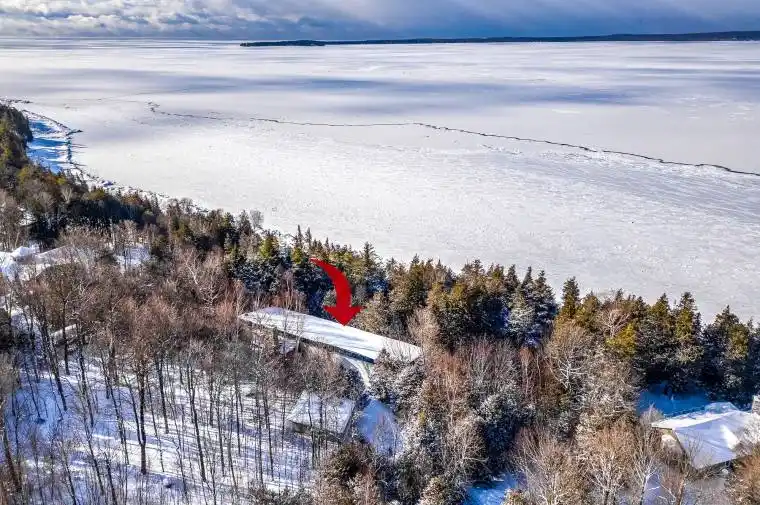 Nestled within the exclusive Cedar Ridge community in Tiny Township, this architect-designed retreat offers a rare opportunity to own a custom waterfront home. Designed by acclaimed architect Peter Bohlin – whose work includes Apple’s New York flagship – this one-of-a-kind Georgian Bay residence was honoured with the 2003 Residential Architect Design Award, recognizing its architectural excellence. Thoughtfully designed & expertly built in 2000, the home balances modern sophistication with a deep respect for its Georgian Bay surroundings. With over 5,800 sq ft of finished living space, including a 2,750 sq ft walkout lower level, the home features 3+2 bedrooms and 4 bathrooms, including a private principal suite. Floor-to-ceiling glass and rich post & beam construction with imported California pine create light-filled interiors that creates a seamless connection to the outdoors. At the heart of the home, a soaring stone wood-burning fireplace brings warmth & architectural impact to the open-concept living & dining areas. Sleek, modern & efficient, the kitchen reflects the homes quiet sophistication & easy flow for everyday living & entertainment. The fully finished walkout level includes additional bedrooms, abundant natural light, & a sauna – perfect for relaxation after a day on the water, whether paddling the shoreline, lounging by the dock, or simply enjoying the peaceful surroundings. Built with enduring quality, with in-floor radiant heating on both levels, a new boiler & hot water tank (2025), & propane generator for reliable 4 season comfort. The 2ac forested lot features 246ft of shoreline on Georgian Bay. A band of evergreens provides natural privacy, with the potential to open sightlines to Christian Island if desired. Just a 2hr drive from Toronto, this architectural treasure is nestled among other exceptional properties in one of Georgian Bays most prestigious communities offering privacy, serenity, & timeless design that will endure for generations.