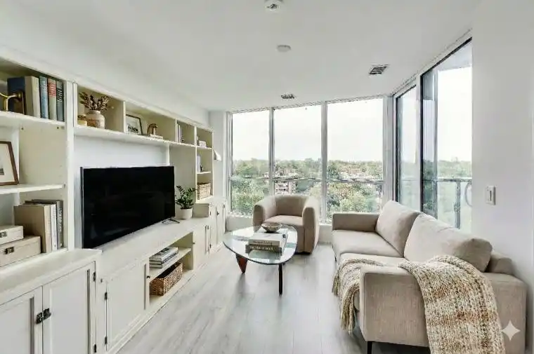 Luxurious executive finished condo unit by renowned award winning builder Tridel, offering 560 square feet of elegant, open-concept living space overlooking the Rosedale Ravine. This immaculate suite features a modern kitchen with beautiful finishes, built-in oven, glass countertop range, dishwasher and washer and dryer with walkout to private enclosed balcony! Ideal contemporary urban living with convenience on the 5th floor … walkout to the stunning amenities on the same 5th floor with pool, barbeque, lounge outdoor seating areas and gym, theatre rooms and more. Stunning natural light from the tree top views of the gorgeous ravine. Located in prime community mere minutes from DVP, Yorkville, Rosedale at your doorstep across the Ravine, shopping and restaurants along the Bloor Yonge Corridor, The Village, Parks, Schools, Walking and Biking Trails, highly accessible convenience to Riverdale and the Danforth, the building includes a grocery market and Cafe on the main floor .. quick 5 minute walk to Castle Frank or Sherbourne station. Crate and barrel wall unit media center included, furniture negotiable also … A perfect blend of style, comfort, and location.