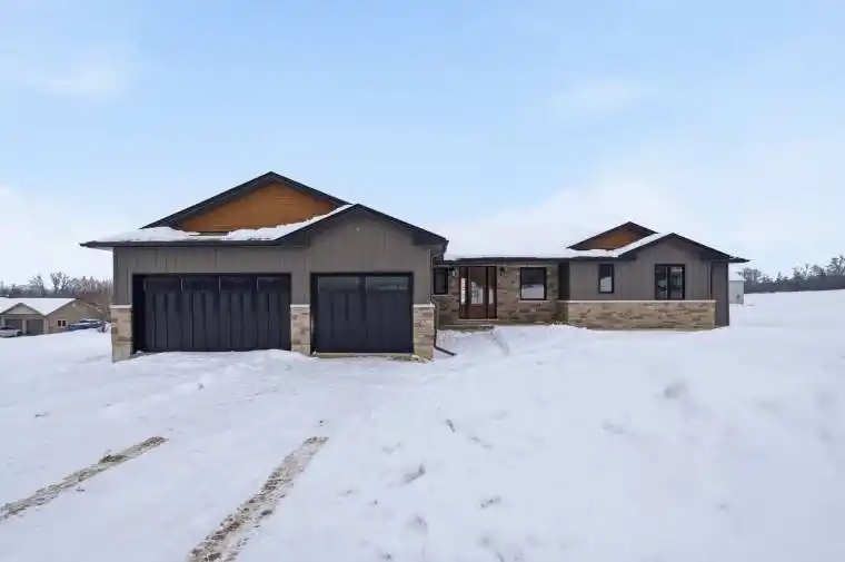 Brand-New completed executive home on Harmony Road. This gorgeous 1,730 sq. ft. bungalow is on a country lot, offering rural privacy while being only 15 minutes from Belleville. Designed with family living in mind, the home features a bright, open-concept kitchen, dining, and living area with large windows, vaulted ceilings, and patio doors leading to a covered deck. The kitchen is finished with quartz countertops, under-cabinet lighting, and a large walk-in pantry with a sink. The spacious primary suite includes a walk-in closet and a spa-inspired ensuite with double sinks, heated tile floors, a quartz vanity, and a custom tiled shower with a glass enclosure. Two additional bedrooms, a full main bathroom, and a conveniently large mudroom accessed from the 3-car garage. The home includes a private laundry room, set apart in its own space located near the bedrooms. The lower level is designed with an additional bedroom, den/office, full bathroom, and a recreation room with a walkout. With so many advanced features throughout the home, the best way to truly admire them is to see it with your own eyes!