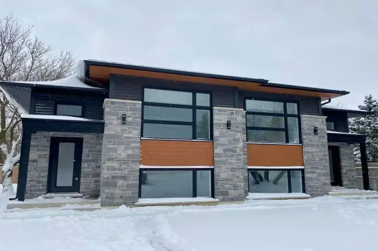 Introducing a brand new raised bungalow-style semi-detached residence thoughtfully designed to offer modern finishes, functional living space, and exceptional comfort. The open-concept main level features a contemporary kitchen seamlessly connected to the dining and living areas, creating an ideal setting for both everyday living and entertaining.The main floor is complete with a spacious primary bedroom and a full four-piece bathroom.The fully finished lower level offers two additional bedrooms, a generous recreation room, a second full bathroom, and a laundry/utility room – delivering versatile space suitable for families, guests, or home office needs. Patio doors off the dining area lead to a private deck, providing a quiet outdoor space perfect for relaxation or hosting guests. Additional features include stacked parking for each unit and brand new construction throughout. Available April 1, 2026.Tenant responsible for heat, hydro, and water. A beautifully designed home offering modern living in a practical and efficient layout – ideal for those seeking comfort, quality, and convenience. (Pictures from the other unit but are a mirror image)