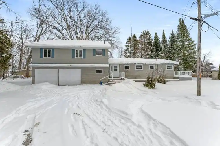 Affordable waterfront on Sturgeon Lake! This private property offers 160 feet of frontage on the beautiful shores of Sturgeon Lake, surrounded by tall trees and a serene, park-like setting. This four-season side-split home enjoys picturesque lake views and a peaceful natural environment. The open-concept main floor is designed to maximize the stunning water views, creating a bright and inviting living space. The home features four bedrooms, including an oversized primary suite overlooking the grounds and lake, complete with double closets and a 3-piece en-suite with jacuzzi tub. Additional bathrooms include a convenient 2-piece powder room on the main level and a fully updated 3-piece bath on the second floor. The newer sunroom offers the perfect place to relax and enjoy the privacy and surrounding nature year-round. The large double-car garage provides ample storage and workshop space with direct access into the home. Recent updates and features include a metal roof, updated windows throughout, multiple composite decks and porches, a four-season sunroom, forced-air wall furnace, and a sprinkler system to keep the grounds lush during the summer months. The natural shoreline provides an ideal habitat for wildlife and offers docking for fishing and waterfront enjoyment.