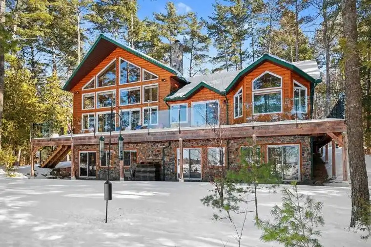 Welcome to 631 Golden Lyn Way! This stunning 4-bedroom, 2-bathroom all-season custom-built residence is located right on the waterfront of the beautiful Golden Lake. Meticulously upgraded and well-maintained, this property offers a true cottage feel without compromising on luxury amenities, comfort, and well-thought-out details. Stepping into the home, you will notice the welcoming feel, hardwood flooring, cathedral ceilings, and big windows that flood the space with light. The spacious kitchen offers a convenient breakfast bar, plenty of counter space & cabinets for storage – perfect for hosting & entertaining. The open-concept living & dining area is the true heart of the home, featuring a grand stone fireplace that serves as the main heat source of the residence – the perfect gathering space to enjoy cozy evenings by the fire. A spacious entry, large primary bedroom, guest bedroom, office space & 4-piece bath round out the main level. Upstairs, the loft offers extra space, with views of the lake & forest. On the lower level, you will find a recreation area, 3-piece bathroom w. a free-standing bathtub, two bedrooms, a dedicated laundry room & plenty of space for storage. All bedrooms in the home feature direct access to the outdoors – whether to the patio on the lower level or wraparound porch and deck on the main level – catching the morning sun while sipping your coffee, or views of the sunset in the evening are guaranteed. The property also features two private docks, a waterfront deck, bunkie with wood stove, boathouse, heated outdoor shower, outhouse w. sink & running water, detached oversized heated 1-car garage, and carport. Only a 20-minute drive away from Eganville, and a 45-minute drive to Pembroke, this is the perfect spot for those leading an active lifestyle, seeking privacy & serenity, who also enjoy the convenience of being close to amenities & vibrant town centres. Don’t miss out on experiencing this fantastic turn-key opportunity for yourself!
