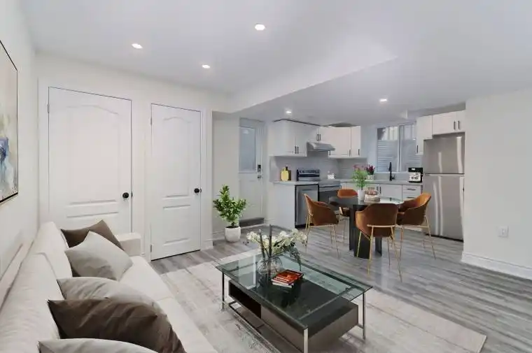 **Legal Basement Apartment**. Walk-Up Private Access From The Rear Of The Home To An Open Concept Unit With Gorgeous White Kitchen With Stainless Steel Appliances Including Built-In Dishwasher! Smooth Ceilings And Pot Lights, Freshly Finished With Gorgeous Finishing Touches. Modern Bathroom And Ensuite Laundry. Both Bedrooms Have Double Door Closets With Lots Of Storage And Large Egress Windows, Providing Sunshine And Safety.