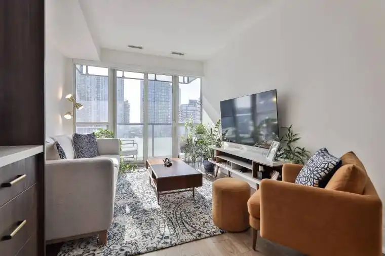 Rarely Does A Residence Of Such Architectural Refinement & Unrivaled Luxury Become Available At Front & Bathurst. This Meticulously Designed And Fully-Updated Masterpiece In Reve Condominiums Offers 1060 Well-Appointed Interior Square Feet. The Three-Bedroom Home Provides An Unparalleled Living Experience With Refined Custom Finishes Throughout, Complemented By Breathtaking Views From A Private South-Facing Balcony. The Home Is Perfectly Situated In The Building As Each Room Exudes Panoramic Serenity With A Rare South and North Exposure. The Well-Defined Formal Principal Rooms Accommodate An Unrivaled Living Experience And Are Designed For Seamless Entertaining On Any Scale. The Custom Built Kitchen Features Quarts Countertops And Backsplash As Well As Top Of The Line Appliances From Bosch, Porter & Charles, Leibherr & Aeg. The Kitchen Provides Functionality With A Convenient Breakfast Bar & Ample Storage With An Adjoining Coffee Bar. The Indulgent Primary Bedroom Retreat Features A Large Walk-In Closet And Opulent Fully-Updated Three-Piece Spa-Like En-Suite Bathroom With An Aquaflo Smart Toilet & A Tenzo Airboost Rain Shower. The Second Bedroom Showcases Captivating North Views And Has Easy Accessibility To The Second Fully-Updated Bathroom. The Large Third Bedroom Is Perfect For All Guests, Families Or Those In Need Of An Enclosed, Discreet Working Environment. Other Tasteful Updates Include Upgraded Hardwood Flooring Throughout, New Lighting Fixtures & Pot Lights, Remote Controlled Window Coverings, New 8″ Baseboards, New Door Hardware & Hinges, New Electrical Outlets With Usb A/C, New Light Switches & Dimmers. World Class Amenities & Location. Steps To Renowned Shopping And Restaurants Of King West, The Entertainment & Financial Districts & The Well. Easy Access To Martin Goodman Trail, Lake Ontario, Billy Bishop, Gardiner Expressway, CN Tower, Scotiabank Arena, Rogers Centre, Toronto Convention Centre, Coronation Park & The Bentway.