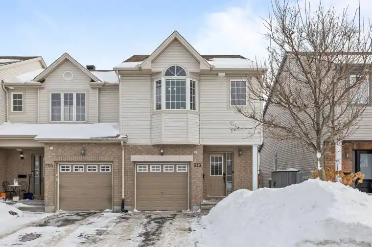 Welcome to 213 Opus Street! This immaculate END UNIT townhome in the highly sought-after Trailwest community of Kanata offers the perfect blend of comfort, style, and convenience. With over 2,000 sq. ft. of living space, this bright 3-bedroom, 2.5-bath home is ideal for families looking to grow. The main level features an inviting foyer, open-concept living and dining areas with gleaming hardwood floors, and a spacious eat-in kitchen with stainless steel appliances. A convenient powder room completes this level. Upstairs, you’ll find new flooring throughout, a generous primary bedroom with vaulted ceilings, a walk-in closet, and an ensuite complete with a soaker tub and separate standing shower. Two additional well-sized bedrooms and a full main bath offer plenty of space for the whole family. The fully finished basement provides a cozy family room, laundry area, and ample storage. Step outside to enjoy the fully fenced backyard, perfect for relaxing or entertaining outdoors. Ideally located close to schools, parks, grocery stores, public transit, and the Trans Canada Trail, this home checks all the boxes for modern family living. A fantastic opportunity to own a move-in-ready home in one of Kanata’s most sought-after neighborhoods-come see it for yourself!