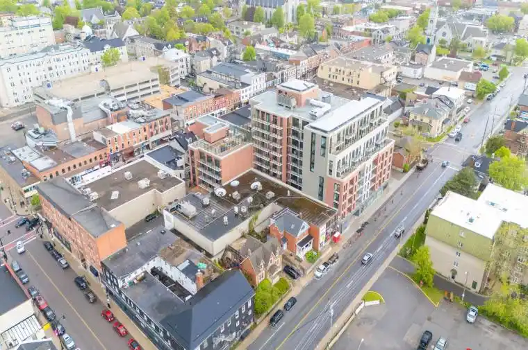 Don’t look any further than The Crown Condominiums in the heart of Kingston! This level 3 unit offers a stylish 1-bedroom plus den layout with 563 square feet of thoughtfully designed living space and is available now. The open concept living and dining area creates a bright, welcoming atmosphere, complemented by in suite laundry, a 4 piece bathroom, powder room, and beautiful views that enhance everyday living. Residents enjoy access to an impressive array of amenities, including a private rooftop terrace featuring BBQ stations, dining and lounge areas, greenery, yoga and outdoor activity space. Additional building features include concierge service, an exclusive Fitness Centre and Yoga Studio, and a Party and Multi Purpose Room complete with a full kitchen-perfect for hosting gatherings or events. Underground parking, bike storage, and lockers are available for an additional cost. Developed by IN8 Developments, a trusted name with over 20 years of experience in urban residential projects, The Crown Condominiums reflects a commitment to innovative, efficient design and successful community focused developments. Its unbeatable location places you steps from Kingston’s vibrant downtown core, surrounded by restaurants, cafés, and a mix of boutique and major retail options. Nearly all of historic downtown and the waterfront are within a 10 minute walk, with quick access to Queen’s University and RMC.