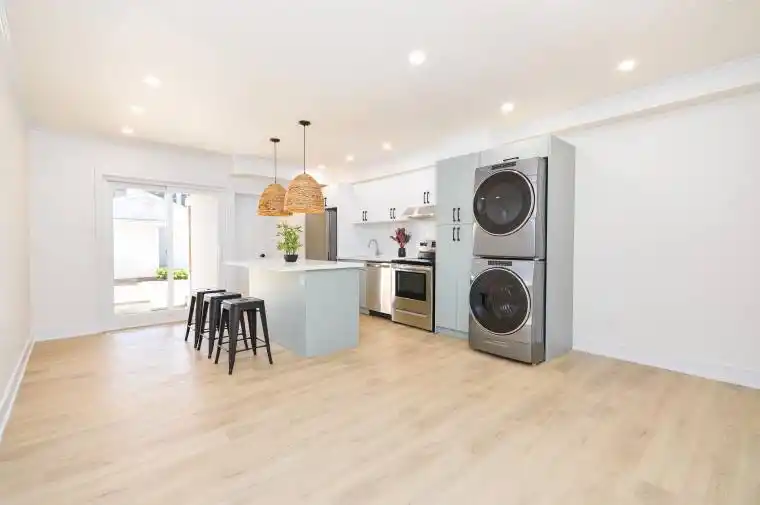 Professionally Managed 2 Bed, 1 Bath Suite Offering A Bright And Spacious Open-Concept Living, Dining, And Kitchen Area With Direct Walk-Out To The Yard. Enjoy A Stylish Modern Kitchen Featuring Two-Tone Cabinetry, Stainless Steel Appliances, And A Generous Centre Island With Breakfast Bar. Laminate Flooring Runs Throughout The Suite, Complemented By Full-Size Ensuite Laundry For Added Convenience. Both Bedrooms Are Well-Proportioned And Filled With Natural Light Through Large Windows. Situated In The Highly Desirable Corso Italia-Davenport Neighborhood, Just Steps To St. Clair West Shops, Cafés, Transit, And Beautiful Nearby Parks. **Appliances: Fridge, Stove, Dishwasher, Washer and Dryer **Utilities: Heat, Hydro & Water Extra, $100 Flat Rate/Month