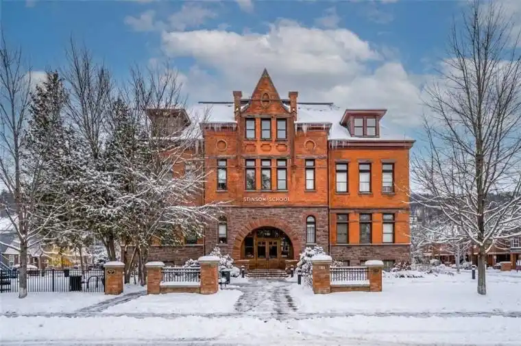 Discover a truly distinctive opportunity at the historic Stinson Lofts, where old-world character and modern comfort converge. This rare main-floor corner unit offers exceptional value for its generous square footage, highlighted by a remarkable 28′ x 12′ private patio with sweeping views of the community playground and the lush Hamilton escarpment. Inside, soaring ceilings, exposed brick walls, and rich hardwood floors preserve the timeless charm of the 1894 Stinson School, while an airy open-concept design provides a bright and inviting flow. The stylish kitchen features quartz counters with a breakfast bar, stainless steel appliances, and in-suite laundry, seamlessly opening to spacious living and dining areas ideal for entertaining. This unique layout features 2 primary suites, the first with dual closets and a modern three-piece bath. The second private suite has it’s own entrance off the dining area through french doors, with a large versatile accessway that is perfect for an office or extra storage. Believed to have once been the kindergarten dassrooms of the original school, this spacious suite indudes built-in shelving and a fall bathroom. It’s time to move into this one-of-a-kind residence that offers a rare blend of heritage elegance, modern functionality, and unbeatable value. Includes one exdusive parking spot, P21