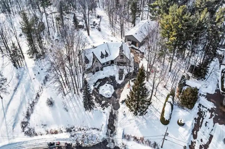 Exceptional estate-style home with 5,079 total sq ft and set on over 2 acres, offering space, privacy, and extensive modern upgrades. This thoughtfully designed residence features 5 bedrooms and 4.5 bathrooms, making it ideal for families seeking room to grow and flexible living spaces. Extensive upgrades completed between 2021-2022 include a forced-air furnace (2021), boiler system (2022), two air-conditioning units (2022), on-demand hot water system plus tank (both owned), HRV system (2021), natural gas fireplace (2022), roof (2022), all new PEX and copper plumbing (2021), and complete electrical replacement with a 200-amp panel (2021). The kitchen was fully redesigned with custom cabinetry and quartz countertops, while all bathrooms have been updated with new cabinetry, quartz counters, ceramic flooring, and modern fixtures. Hardwood flooring spans the main and second levels, complemented by ceramic tile in high-traffic areas. The finished basement offers heated LVT flooring, a stone feature wall, custom cabinetry, and walk-out access through new French doors. A rare and highly desirable feature is the oversized detached garage/outbuilding, approximately 40 ft x 80 ft, with heat and air conditioning, in addition to the heated double attached garage. This space is ideal for trades, hobbyists, collectors, or extensive storage needs. Outdoor amenities include a rear deck, fenced inground swimming pool, interlock landscaping, and multiple firepit areas, creating a private and inviting setting for entertaining and everyday enjoyment. Additional features include CAT6 wiring throughout, a whole-home Sonos system, Ring doorbells, exterior security cameras, EV charger rough-in, Gererac generator rough-in on the side of the attached garage, and Google Nest thermostats. A truly turnkey property offering exceptional space, functionality, and privacy, with major upgrades already completed. 24 hrs irrevocable for offers/24 hrs for showings. Some photos are digitally enhanced.