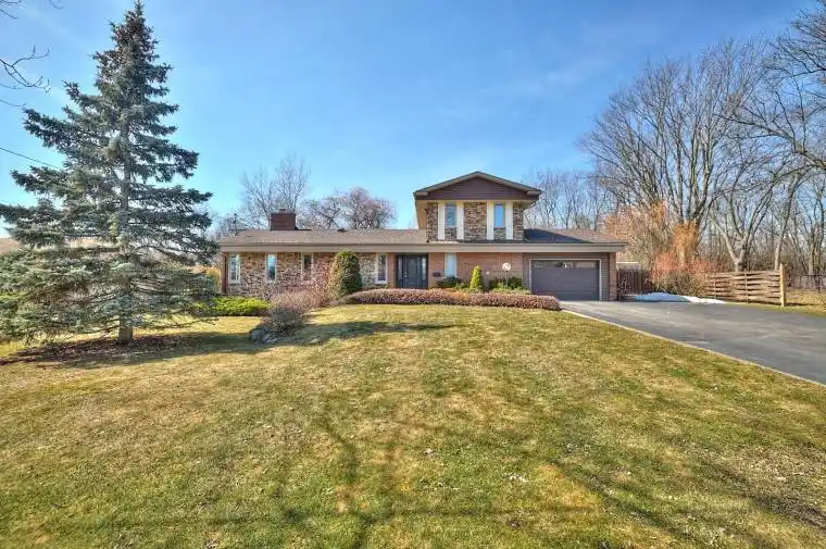 Set on an expansive 125×225 ft lot with no rear neighbours, 1121 Pettit Rd offers privacy, versatility, and beautifully upgraded living just minutes from shopping, services, schools and recreation – with easy access to the QEW to Toronto and Peace Bridge to Buffalo. This thoughtfully renovated home blends timeless character with modern comfort. Inside, vaulted ceilings and abundant natural light create a bright, airy atmosphere. The living room is anchored by a stunning custom wood and brick fireplace surround and exposed beams, adding warmth and architectural charm. The main floor features a formal dining room, a dedicated office space, and a beautifully updated kitchen with peninsula and 2-seat breakfast bar, providing flexibility for everyday living, entertaining, and working from home. The welcoming foyer leads through the kitchen to the light-filled family room with secondary dining area and double doors leading to the backyard. A bedroom with an adjoining 3-piece ensuite allows for convenient main-floor living, while an additional 3-piece bathroom, mudroom with garage access, and laundry room add practicality. Upstairs are two spacious bedrooms, including one with ensuite privilege to a 4-piece bathroom featuring a relaxing soaker tub and built-in towel storage. The finished basement enhances the home’s versatility with a second kitchen, large rec room, den, and potential for a fourth bedroom – ideal for multi-generational living, guests, or in-law capability. Outdoors, the landscaped yard feels like a private retreat. Mature trees, winding garden paths, and lush greenery attract birds and wildlife, creating a peaceful setting. Enjoy summer days by the above-ground pool, relax on the covered patio, or gather with family and friends in the expansive backyard with gazebo and sheds. Offering space, flexibility, and elegant upgrades inside and out, this is a rare opportunity to enjoy tranquil living without sacrificing convenience.