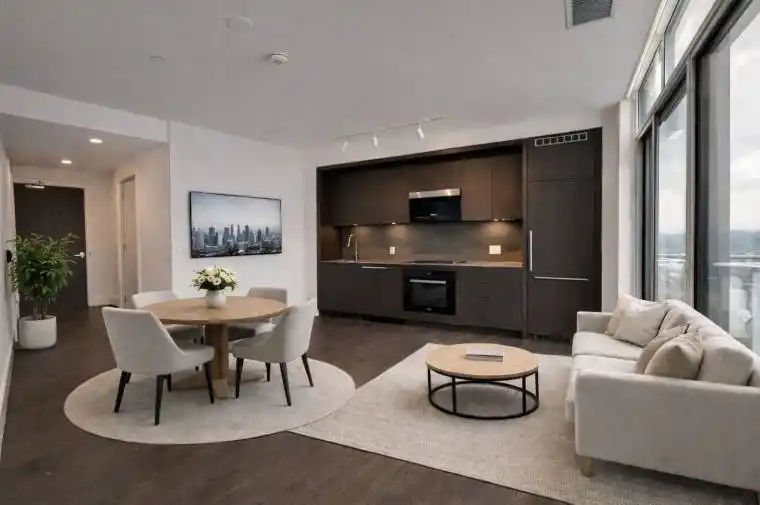 Location, Location, Location! Truly a Gem. Brand new, never-lived-in luxury suite directly across from prestigious Bayview Village Mall, offering breathtaking panoramic views and a spacious, practical layout with an unbeatable 100% transit score. Walk to subway, shopping, groceries, fine dining, parks, and scenic trails – urban convenience at its finest. This beautifully designed 1-Bedroom + Den (den large enough to function as a second bedroom) features two full bathrooms and a wide, oversized balcony perfect for relaxing or entertaining. Built by renowned developer Canderel, the unit showcases refined, high-end finishes throughout. Step inside to soaring ceilings and a designer kitchen equipped with premium Miele appliances, built-in fridge and dishwasher, sleek cabinetry, and under-cabinet lighting. The open-concept living and dining area offers a seamless flow, ideal for both entertaining guests and enjoying quiet evenings at home. Includes one parking space and one locker for added convenience. Luxury, lifestyle, and location – all in one exceptional address.