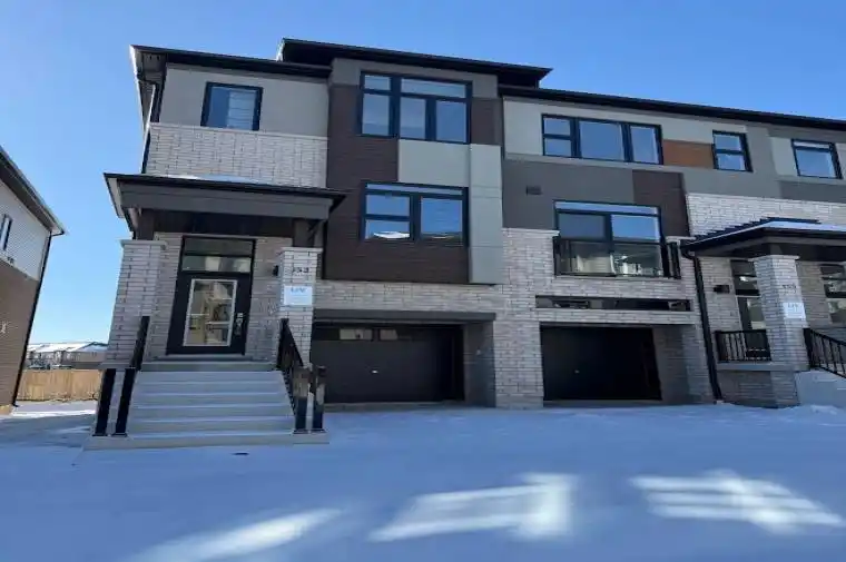 Experience modern living at its finest in this brand-new, never-lived-in freehold townhouse, ideally located in the distinguished Sienna Woods West community of Brantford. Nestled on a premium walk-out ravine lot with tranquil green space views, this beautifully upgraded home features 3 spacious bedrooms, 2.5 bathrooms, and a bright open-concept design with 9-foot ceilings and upscale finishes throughout. Built by a reputable builder with striking brick and stucco exteriors, the home includes a walk-out basement, a stylish kitchen with sleek cabinetry, and brand-new appliances and window coverings to be installed before move-in. The primary suite offers both a walk-in closet and an additional wardrobe, complemented by a private ensuite, while the main floor provides convenient laundry and ample storage. Perfectly positioned near the Grand River, scenic trails, parks, schools, shopping, and Wilfrid Laurier University, with easy access to Highways 403 and 401, this exceptional rental opportunity combines elegance, comfort, and convenience in a vibrant, family-friendly community.