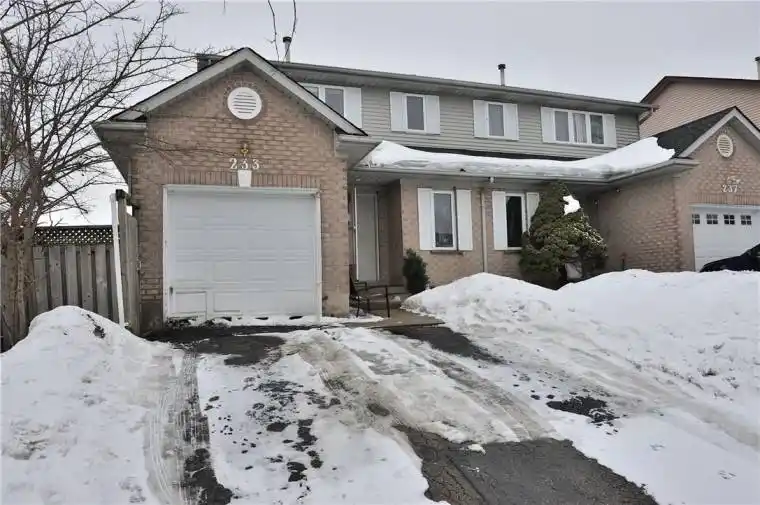 Welcome to a home that delivers space, flexibility, and location – all in one of Kitchener’s most established and family-oriented communities,Highland West. Situated on a quiet crescent, this well-maintained large semi-detached home with single garage offers exceptional living spaceand thoughtful updates throughout. The main level is designed for connection and comfort. The kitchen – truly the heart of the home – opensinto the adjoining dining and living areas, creating a welcoming space for family gatherings and entertaining. A convenient 2-piece bath andmain-floor laundry complete this level. With 4+2 bedrooms and 3.5 bathrooms in total, this home easily accommodates growing or multi-generational families. Upstairs features four generously sized bedrooms, a 4-piece main bathroom, and a spacious primary bedroom completewith its own private ensuite. The fully finished walkout basement adds incredible versatility, featuring a separate rear entrance and a self-contained 2-bedroom in-law suite with kitchen – ideal for extended family, guests, or potential rental income. A comfortable recreation roomwith gas fireplace and a private laundry area enhance the lower-level living space. Step outside from the basement patio doors onto a newcomposite deck, perfect for relaxing or entertaining. The home sits on a large, deep, fully fenced backyard offering plenty of room for children,pets, and outdoor enjoyment. Ample storage throughout adds to the home’s functionality. Located close to shopping centres, dining andentertainment options, trails and parks, library, public transit, schools, and expressway access – this is a home that truly offers everything afamily needs. Move-in ready and thoughtfully updated, 233 Benesfort Crescent is an outstanding opportunity in a highly desirableneighbourhood.