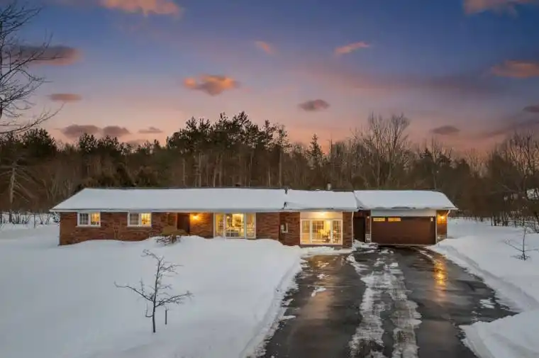 Welcome to this impeccably maintained A MUST SEE… Ranch Style Bungalow in the peaceful community of Perkinsfield, offering pride of ownership and exceptional versatility just minutes from the shores of Georgian Bay. Situated on an oversized 0.935-acre lot and only steps to the Trans Canada Trail, this spacious home features 4 bedrooms on the main floor, 3 bathrooms, and generous living rooms filled with natural light, including a stunning second living room with 10-foot ceilings, gas fireplace, hardwood floors, and pot lights. A thoughtfully designed addition includes a second primary bedroom with private access to the backyard and interior entry to the fully insulated double car garage, complete with a gas line for a future heater. The flexible layout offers excellent in-law suite potential with a separate entrance, kitchenette, barn door feature and laundry hookup. The home is equipped with a 200-amp electrical panel, owned gas water heater, and central air conditioning (3 years old), providing comfort and peace of mind. Enjoy a brand-new (2026) stainless-steel gas stove and built-in microwave, an oversized INTERLOCK driveway accommodating 10+ vehicles, and ample space to build a shop for your recreational toys. Surrounded by nature and within walking distance to a large Perkinsfield Park, including the pavilion for winter skating, tennis courts, ball diamonds and playground and just a short drive to Balm Beach, Midland, and Penetanguishene for shopping, dining, hospital, and everyday amenities. This home offers the perfect blend of rural tranquility, convenience and is ideally located to raise your family in or retire in rural tranquility.