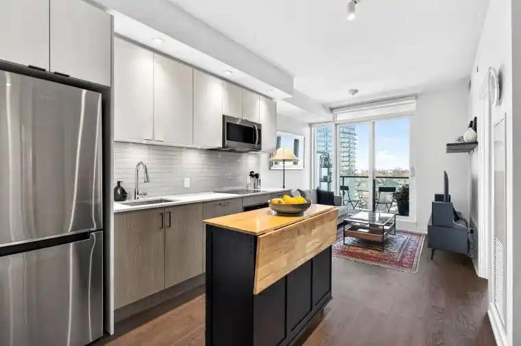 Nestled between High Park and Lake Ontario, this stunning oversized 1+ bedroom, 2 bathroom suite in the Mirabella Condominiums East Tower offers breathtaking north-facing views of High Park and Grenadier Pond. This bright, open-concept unit features 9-foot ceilings, wide-plank laminate flooring, and a sleek modern kitchen complete with stainless steel appliances and quartz countertops. Designed with both sophistication and comfort in mind, the spacious layout is perfect for everyday living and entertaining. An ideal location for outdoor enthusiasts, enjoy immediate access to the waterfront trails along Sir Casimir Gzowski Park, Sunnyside Pavilion, and High Park just steps away. Conveniently situated in vibrant South Parkdale, transit is at your doorstep with the 501 streetcar, Lake Shore Blvd W, and the Gardiner Expressway nearby. Bloor West Village is just a 5-minute drive. Daily essentials are within easy reach, including Sobeys Queensway, The Cheese Boutique, Rabba Fine Foods, Costco Wholesale Queensway, and Sobeys Urban Fresh High Park. Residents enjoy an exceptional array of amenities: rooftop terrace with seating & BBQs, indoor pool, fully equipped gym with WiFi, yoga studio, sauna, party room, guest suite with kitchen, business centre with WiFi, kids’ playroom, dog wash station, secure bike rooms with dedicated bike elevator, EV chargers, free visitor parking, 24-hour security, and high-speed internet included in maintenance fees. A medical and dental clinic is conveniently located at street level. EXTRA’S: 24 Hours Concierge, Party Rooms, Fitness Centre, Outdoor BBQ, Stainless Steel Modern Appliances, Front Load Washer Dryer, single underground parking spot. Upgrades in LED lighting in kitchen and den as well as electrical outlet upgrades in living room and den.
