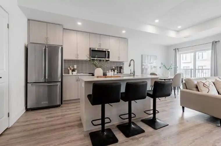 Welcome to this new freehold townhome in Stouffville’s popular Baker Hill community. With its bright, open-concept layout and large windows, this home feels fresh and modern throughout. The kitchen features stainless steel appliances, quartz countertops, a tile backsplash, plenty of cabinet space, and a big centre island with a breakfast bar, making it ideal for family meals or gatherings. Enjoy great outdoor spaces, including a roomy rooftop terrace perfect for BBQs and get-togethers, plus a balcony off the living room for relaxing. Located close to scenic trails, parks, schools, shops, and the GO Train. This home is a fantastic choice for families who want extra space and a convenient location in one of Stouffville’s best neighbourhoods.