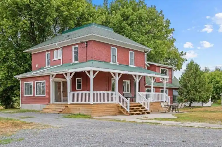 Charming Country Farmhouse on 25+ Acres with Modern UpgradesWelcome to this stunning country farmhouse with modern flair, ideally set on over 25 acres of land, complete with several outbuildings an ideal investment opportunity or retreat.Step inside to discover a beautifully updated kitchen featuring quartz counters, a dual-door pantry, and a spacious dining area perfect for family gatherings. The bright family room with oversized windows fills the home with natural light, while the main floor den with floor-to-ceiling closets adds versatility. Convenience is key with two mudrooms (one with a wash sink) and a main floor laundry room.Upstairs, youll find a primary bedroom with a wall-to-wall wardrobe closet and a private 4pc ensuite, plus an updated full bath with dual sinks, quartz counters, and a modern tub/shower with tile & glass surround. The dual staircases to the second level add character and function, while the 3rd level loft makes a perfect playroom or extra storage space.On the main level, an updated bath with a glass stand-up shower and quartz counters offers extra comfort for family and guests.Enjoy evenings on the wraparound porch, soak in the charm of the farmhouse design with its brick exterior, metal roof, and modern addition, and take advantage of the endless possibilities this property offers both inside and out.Over 25 acres of opportunity. Classic character meets modern living ready to inspire your next chapter! This listing is conditionally sold under MLS XX12362358