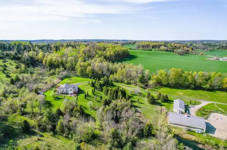 Perched atop 40 breathtaking acres in the rolling Northumberland Hills, this is a fully realized private equestrian centre offering panoramic views, refined living, and turnkey infrastructure rarely found east of the GTA. The custom-built residence is designed for elegant single-level living and effortless entertaining. Vaulted ceilings crown the great room, anchored by a striking stone fireplace. A gourmet kitchen opens seamlessly to an expansive dining area, ideal for hosting. The main-floor primary suite features a walk-in closet, spa-inspired ensuite, and private balcony capturing spectacular sunrise vistas. A welcoming den, sunroom, and beautifully finished lower level with walkouts provide exceptional space for family, guests, and recreation. A separate bunkie adds flexibility for extended family, or guests and a full backup generator provides peace of mind. What truly sets this estate apart is its professional-grade equestrian facility. The modern 8-stall barn includes tack, feed, and storage rooms and connects directly to a bright 6,000 sq ft indoor riding arena with excellent footing and ceiling height. The lower acreage is thoughtfully laid out with 7 paddocks, open pasture, woodland riding trails, and a bass-stocked pond, creating a private training and lifestyle environment. This offering represents a rare opportunity to acquire a complete equestrian operation within easy reach of the GTA – ideal for the serious rider, trainer, or investor seeking a turnkey rural enterprise without compromise. A property of this calibre is seldom available in Northumberland County.