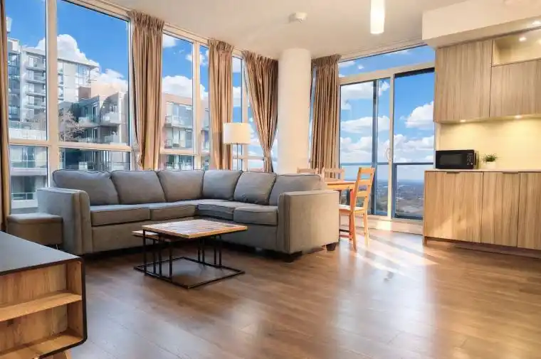 Furnished Bright And Spacious 2 Bedroom 2 Bath For Lease In Highly Sought After And Vibrant Location. Sun-Filled Open Concept Layout With Floor To Ceiling Windows Throughout Unit. Desirable Southwest Exposure With 9′ Ceilings And 818 Sq Ft Of Carpet-Free, Efficient And Functional Living Space. Modern Finishes And Thoughtfully Designed Split Bedroom Layout For Added Privacy. Unbeatable Convenience. Just Steps Away From Fairview Mall, Public Transit, Community Centre, Hwy Access, Restaurants, Shops And More. Enjoy Exceptional Building Amenities Including Visitor Parking, Sauna, Indoor Pool, Media Room, 24 Hr Concierge, Fully Equipped Gym And More. Parking Available For Additional $150 Per Month.
