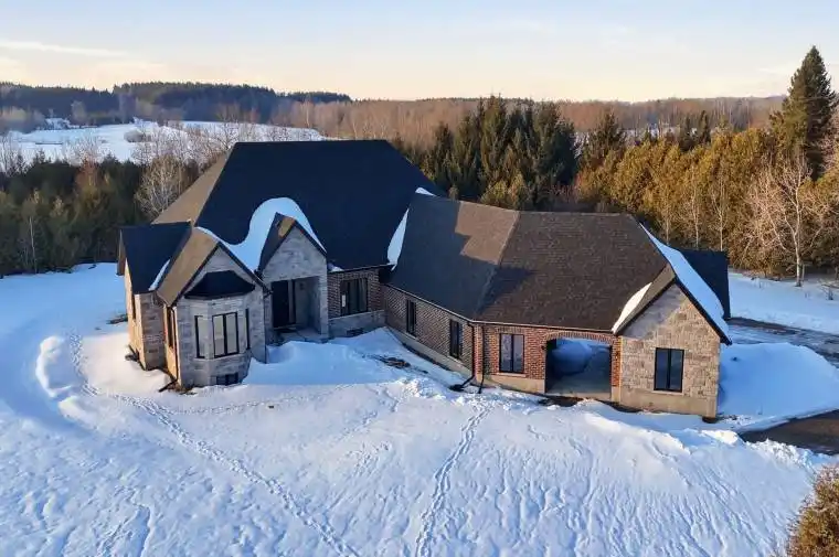 Custom Home* Private 1.07 Acre Lot * Brick & Stone exterior * 4 Car garage, 3 garage doors + 1covered parking/breezeway plus lengthy driveway to park/host 10+ cars!. Luxury Living Awaits on this Estate! Unparalleled elegance, offering over 5,000 sq ft of meticulously designed living space with approx. 2950 sq ft on the main floor. Set in the middle of tranquility, this home features 5 spacious bedrooms (3+2), a main floor office and 3.5 bathrooms. Gourmet Chefs Kitchen is a culinary haven featuring marble countertops, custom cabinetry with craftsmanship, wood hood vent, a gas stove range, French stainless steel fridge, wine bar with mini wine fridge, and a huge island for meal prep and casual dining. Cathedral ceiling plus an electric/propane gas fireplace adorns the open concept “great room” with access to a covered deck. Main floor laundry and so much more. A fully finished basement. Enjoy serene views and the soothing sounds of nature from your expansive estate lot, providing a peaceful retreat from city life. A huge meticulously designed Custom Walk-In Closet, gorgeous bathrooms & more. The expansive garages with over 1,200 sq ft garage provides ample storage and workspace. The 4thgarage space is ideal for a workshop or additional storage needs. This estate combines luxury, functionality and offering a lifestyle of unparalleled comfort. Just 35 mins from Georgetown, Milton, Mississauga and about an hour away from Toronto area. 50 minutes to Toronto Airport.