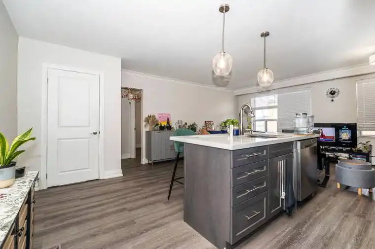 Discover comfort, style, and convenience in this beautifully renovated 1-bedroom Toronto gem, perfect for modern living! Step into a spacious and inviting home where thoughtful design meets everyday practicality. The heart of the home, the chef-inspired kitchen, boasts stainless steel appliances, a sleek ceramic backsplash, granite countertops, and a large center island with double sink and built-in dishwasher, perfect for entertaining guests or whipping up your favorite meals. The open-concept living and dining area is flooded with natural light from a generous window, creating a bright and cheerful atmosphere. A dedicated dining space under a charming pendant light makes hosting dinner parties effortless . Retreat to the spa-like bathroom, featuring a large soaker tub, ample vanity storage, and cabinetry, offering a relaxing sanctuary after a busy day. The spacious bedroom comfortably accommodates a king-sized bed and includes a double closet with an organizer, keeping your wardrobe neat and accessible. Convenience is unmatched with coin-operated laundry on the same floor, steps from transit, and quick access to the highway, York University, and Humber River Hospital. This home truly blends style, functionality, and location, making it a perfect choice for anyone seeking the ideal mix of comfort and city living. Heat and water included, Tenant pays Hydro. Experience the vibrant lifestyle Toronto has to offer – schedule your visit today and see why this remarkable home won’t stay on the market for long.