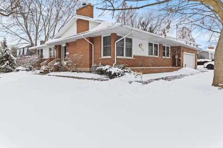 Welcome to a home that immediately feels like the right fit – warm, spacious, and gracefully positioned on a beautiful corner lot in the beloved Rolling Acres community. This brick bungalow offers more than generous square footage; it offers room to grow, room to gather, and room to truly breathe. Step inside to a bright main floor where sunlight moves easily across the tiled entryway and into three inviting bedrooms, each finished with rich hardwood flooring that brings warmth and character to the space. The private primary suite includes its own ensuite, while an additional 4-piece bathroom showcases modern, timeless tile selections. The kitchen – expansive and thoughtfully designed with granite counters, solid wood cabinetry, a central island, and durable tile flooring – flows seamlessly into the dining area, creating a natural hub for everyday living and effortless entertaining. Direct access to the two-car garage adds convenience to the rhythm of daily life. Just a few steps down, the heart of the home opens up: a spacious living room overlooking the backyard, anchored by a wood-burning fireplace that promises cozy winter evenings. Expansive patio doors lead you to your own private retreat – a backyard designed for memory-making, complete with a concrete pool and slide that will define your summers. The finished basement extends the home’s versatility with two additional rooms, a full 3-piece bath, and a large recreation area ideal for a home office, guest suite, or dedicated family hangout. Set on a premium lot with undeniable curb appeal – enhanced by a triple-wide driveway – this well-built home blends generous living space with unique architectural character and long-term potential. With the public school just down the street and minutes to the highway and nearby shopping, the location supports both convenience and community. A home that offers space, comfort, and the promise of an elevated lifestyle – ready for its next chapter.