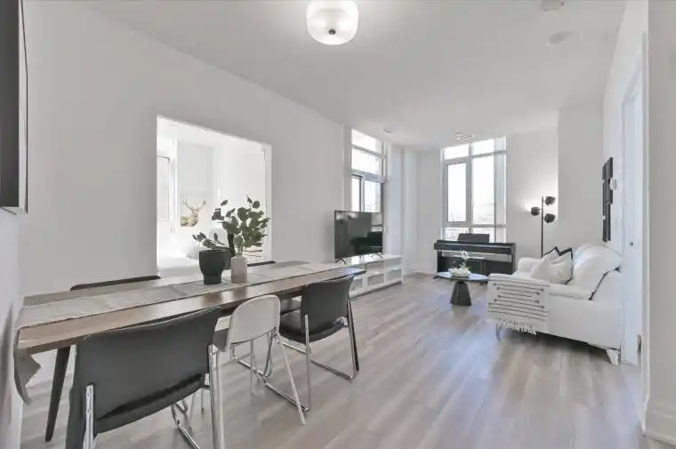 Rare 2+Den CORNER SUITE in the heart of Downtown Markham! Approx. 1,000 sq ft. Bright and spacious unit offers an exceptional layout with too many great features to list. Enjoy ultra-high ceilings, expansive windows throughout, and an oversized private terrace overlooking a peaceful park and ravine setting. Experience the perfect balance of urban convenience and nature, with a newly completed trail (2025) right at your doorstep. Open concept kitchen offers granite countertops and a functional layout ideal for everyday living and entertaining. Oversized den with a huge window is like a 3rd bedroom, larger than most newly constructed condo bedrooms, comfortably accommodating a queen-size bed and a large desk while still feeling open and bright. Elevated first-floor location provides easy access without compromising privacy. An exterior building entrance is conveniently located beside the unit for quick in-and-out access, six street parking spots are located directly in front of the terrace for extra convenience, plus the elevators just steps away with direct access to underground parking and locker. Quiet, family-oriented residential building (not mixed-use) with excellent management, 24-hour concierge service, abundant visitor parking, and a recently waterproofed underground garage. Quiet&friendly next-door neighbors are an added bonus. Unbeatable location, steps to parks, trails, shops, restaurants, theatre, Shoppers Drug Mart, and the York University campus. Only 5 minutes to the GO Station and minutes to Hwy 7, 404 & 407. Walking distance to the future Markham Centre Public Elementary School and within top-ranking school boundaries including Unionville HS and St. Augustine CHS. Move-in ready and meticulously maintained, a rare opportunity to enjoy space, light, and lifestyle in one of Markham’s most desirable communities.