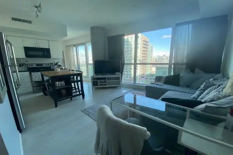 move in April 1st or later. Bright And Sunny Corner Suite With 88 Sqft Of Outdoor Balcony and functional floor plan with a functiona and efficient layout with no wasted space. Featuring Panoramic Views In The Master Bedroom, 9’Ceilings, Laminate Flooring Throughout, Open Concept Living, Floor To Ceiling Windows, Fibre Optics Available. Energy Efficient Building. . Ensuite Laundry, Stainless Steele Appliances, Visitor Parking And Steps To Restaurants, Metro (Grocery), And Transit.