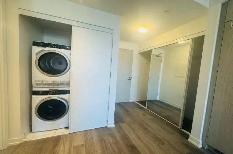 Bright and Spacious One-Year-Old 1+Den in a Luxury Condo. The Enclosed Den with a Door Can Function as a Second Bedroom, Nursery, or Home Office. Floor-to-Ceiling Windows Provide Breathtaking, Unobstructed City Views with Abundant Natural Light. Modern Kitchen Featuring High-End Stainless Steel Appliances. Unbeatable Location – Steps to the Financial & Entertainment Districts, Loblaws, LCBO, Union Station, Harbourfront, Sugar Beach, and George Brown College. Quick Access to the Gardiner Expressway.