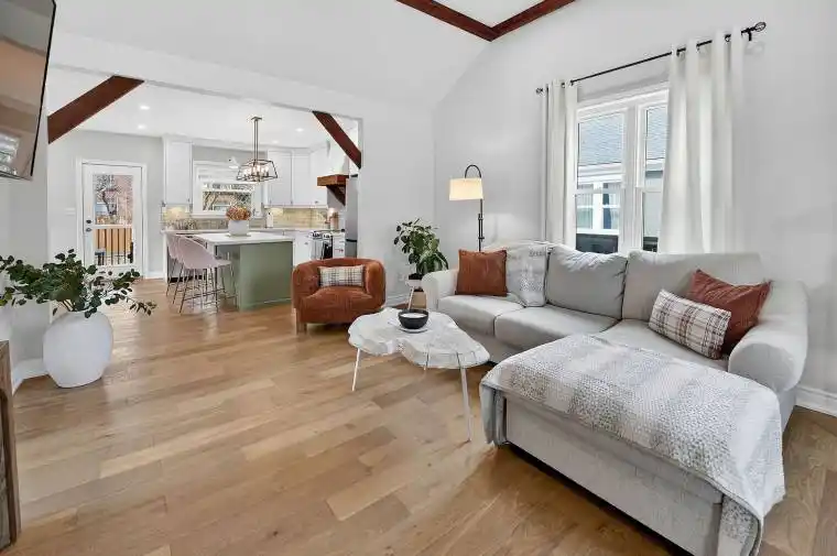 23 Rodman Street – A GORGEOUS Beauty ! Welcome to this professionally renovated top-to-bottom home where no detail has been overlooked. This charming century old property has been completely transformed, with a copy of the closed permit available in supplements for peace of mind. From the moment you arrive, you’ll appreciate the inviting curb appeal, complete with a concrete sidewalk, cute covered porch , a welcoming first impression. Enjoy the rare bonus of side-by-side parking plus additional street parking, a newly installed fully fenced yard, and the opportunity to build your own garage if desired. Step inside to an incredible great room featuring vaulted ceilings and stunning timber barn beams – the perfect blend of character and modern comfort. The trendy kitchen showcases a beautiful(moveable) island, quartz countertops, undermount lighting, dedicated coffee bar, s/s appliances (d/w 2025), soft close drawers, and seamless access to the backyard – ideal for BBQs and relaxing on the covered patio.After dinner, stroll the nearby Terry Fox Trail and enjoy the lifestyle this neighbourhood offers.The primary bedroom features ensuite privilege and a custom built-in closet. The partially finished basement offers a spacious family/rec room, feature wall, convenient two-piece powder room, and combined laundry area. Major updates include: Roof (2023) A/C (2025) , Furnace 2022, and top-of-the-line sump pump w/battery backup. Exterior waterproofing, french drain across the backyard. Matching custom shed with concrete pad and hydro – perfect for hobbies, storage, or a creative studio space.Walk to local favourites like Tangerine Tortoise – a boutique dining experience – or enjoy your morning coffee or evening wine at Pique- Nique known for supporting artisans, farmers, and locals. Pack a picnic basket or dine in ! Everything is done here – just move in and enjoy this gorgeous maintainable place. A truly special walkable boutique find in a vibrant community!