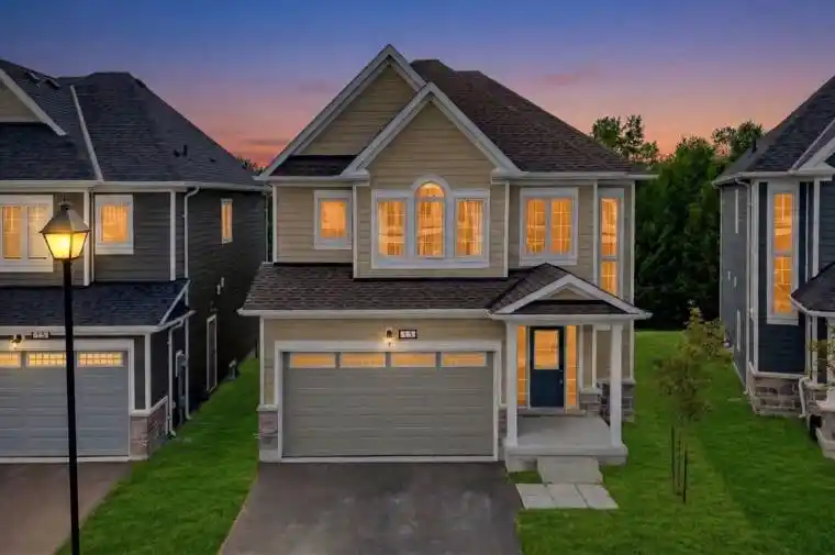 Welcome to “The Coast”, a stunning 4-bedroom, 4-bathroom detached home in the highly sought-after Georgian Sands community of Wasaga Beach. Backing onto the scenic Wasaga Sands Golf Course, this premium ravine lot offers exceptional privacy and picturesque views. Step inside to a grand front foyer highlighted by soaring cathedral ceilings. The open-concept main floor features 9-foot ceilings throughout, creating a bright and airy living space perfect for modern family living. The kitchen is thoughtfully designed with stainless steel appliances, stylish backsplash, and a large center island-ideal for entertaining guests and hosting family gatherings. An upgraded oak staircase with stained railings and elegant iron pickets leads you to the second level, where convenience meets comfort. All four spacious bedrooms feature access to full bathrooms, including Jack and Jill ensuites, while the primary retreat boasts a luxurious 5-piece ensuite. Second-floor laundry adds everyday practicality. Complete with a double-car garage and private driveway, this exceptional home is located just a 5-minute drive from Wasaga Beach Main Beach 1, offering the perfect blend of golf course tranquility and beachside lifestyle. A rare opportunity to own a premium home in one of Wasaga’s most desirable neighborhoods.