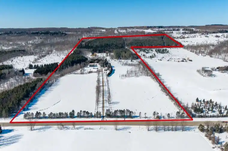 Rare opportunity to secure 99.5 acres with breathtaking panoramic views over the Beaver Valley, offering an exceptional combination of privacy, natural beauty, and outdoor adventure. Set high above the valley floor and surrounded by multi-million-dollar estates, this remarkable property provides the perfect canvas to create a spectacular private country retreat with some of the most dramatic views the Beaver Valley has to offer. The land features a beautiful mix of rolling open fields, mature forest, and an extensive network of established trails that wind throughout the property. Whether hiking through the woods, snowshoeing in winter, or exploring by ATV, the trails create endless opportunities to experience the landscape in every season. The varied terrain provides multiple vantage points where the sweeping panoramic valley views truly take centre stage.A picturesque two-acre pond with a small island adds to the natural charm and offers a peaceful setting for summer recreation, fishing, paddling, wildlife watching, or simply relaxing in complete privacy. The property also backs onto approximately 280 acres of protected heritage land, providing even greater privacy and protection against future development, while offering access to dramatic cliffs, caverns, and additional trails to explore. A Century farmhouse, 1,700 Sq Ft barn, and Inground pool currently exist on the property and could provide interim use while planning your future vision. Hydro has already been buried from the road, ensuring the spectacular valley views remain unobstructed. Large parcels of this scale and setting rarely come available-secure your place above the valley and create something truly extraordinary.