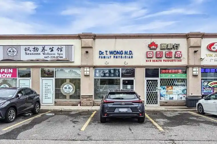 Bright and Versatile Space in Prime Location! Located at the high-visibility corner of Warden & Steeles, this unit offers outstanding signage exposure directly facing Warden Avenue. It is situated in a thriving, well-established plaza anchored by T&T Supermarket, Shoppers Drug Mart, Boston Pizza, medical clinics, wellness centers, and multiple restaurants. The interior layout includes two clinic rooms, a private office, a welcoming reception area, and a private washroom. Ideal for a wide range of professional uses, including health and beauty services, medical-related businesses, dental clinics, law offices, and accounting firms.