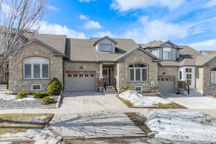 FREEHOLD, NO CONDO FEES NO BOARD FEES! Why buy a condo when you can own this ONE OF A KIND townhome bungalow. This bright and stylish open-concept home features 9 ft ceilings, hardwood and ceramic flooring, and a functional layout designed for empty nesters for first time home buyers. The main floor offers a spacious primary bedroom with walk in closet, 4 pc bathroom, and convenient main floor laundry just off the kitchen. An inviting, spacious and bright living and dining area that allows plenty of room for family get togethers. The eat in kitchen overlooks the private fenced backyard with sliding doors leading to a covered porch/deck, the perfect spot to enjoy your morning coffee or relax outdoors. The large unfinished basement will surprise you with the amount of space it has. With two cold rooms under the front a back porches that is not often found. It offers incredible potential to create your own design that can easily accommodate a 3pc bath( roughed in), 1- 2 more bedrooms and a recroom if needed. . Appealing front curb appeal with stone and brick, attached single-car garage with insulated garage door and inside access from the garage. Located in a prime Cambridge location within walking distance to Cambridge Centre grocery stores and public transit. Quick access to Highway 401, making commuting and everyday amenities incredibly convenient.