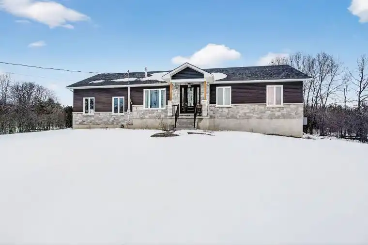 Welcome to this lovely and bright 8-year-old bungalow, offering the perfect blend of modern comfort and peaceful country living. This carpet-free home features 3+2 bedrooms and 3 full bathrooms, thoughtfully designed with quality finishes throughout. The main floor welcomes you with convenient access from the attached double garage, a dedicated laundry/mudroom area, and an inviting open-concept layout. The stunning kitchen showcases quartz countertops, a large island ideal for entertaining, and flows seamlessly into the spacious dining area and living room, complete with a cozy propane fireplace. Sliding doors off the dining area lead to a generous deck overlooking the forest – the perfect spot to relax and enjoy the view. You’ll find three well-appointed bedrooms on the main level, including a beautiful primary suite featuring a large walk-in closet and a private ensuite bath, along with a full main bathroom. The fully finished lower level expands your living space with high ceilings, in-floor heating, two additional bedrooms, a 3-piece bathroom, a large recreation room, and storage. The utility room also provides convenient access to the garage. Tastefully finished throughout with durable vinyl plank flooring, this home is move-in ready and designed for easy living. Situated on 3.36 private acres and set well back from Hegadorn Road, this property offers exceptional privacy while still being easily accessible. We look forward to welcoming you home!