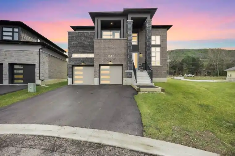Beautiful new detached home in Blue Mountain Resort, next to Georgian Bay, Georgian Peaks Club, Georgian Bay Golf Club, and Georgian Trails. Fantastic location with gorgeous lake views at the front and amazing mountain and ski slope views at the rear. A short walk to the beach and nearby trails, and a short drive or bike ride to Blue Mountain, Thornbury, and Collingwood with plenty of dining and shopping options. The spacious main floor offers hardwood floors, extra-tall windows, a 14-foot ceiling in the family room, a kitchen with stainless steel appliances, laundry, and direct access to the double garage. The upper level features four large bedrooms, three full bathrooms, and two walkout balconies with expansive views across Georgian Bay. The primary bedroom includes a walk-in closet, ensuite bath, and mountain slope views. Large unfinished basement and oversized backyard.