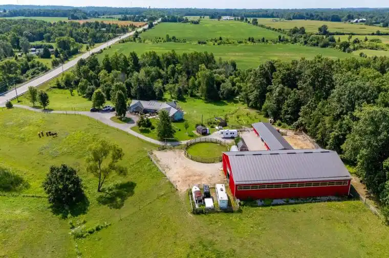 Discover the ultimate rural lifestyle on this rare 93-acre farm/equine retreat, thoughtfully designed for horse lovers, hobby farmers, or anyone seeking a peaceful and productive escape. Sustainability Meets Beauty This property is enrolled in an ALUS Canada tree planting program, with 3,500 trees different varieties planted in 2019. These trees must remain untouched for 15 years and generate an annual income of approximately $518-a smart blend of conservation and return. The Land has approximately 63 acres of worked farmland, (12 acres in hay) 4 acres of fenced pasture. Bush, Hard wood trees and pasture around the house . Plenty of space to grow, graze, and enjoy nature in every season. This spacious raised ranch features: 5 generous bedrooms & 4 bathrooms. Fully finished walk-out basement with separate entrance and a temperature-controlled wine cellar, 4 skylights that fill the home with natural light . Above-ground pool heated on the deck for summertime fun. Automatic whole-home backup generator for peace of mind. Furnace (2023) and water heater (2022)-updated for your comfort and efficiency. Equestrian & Agricultural Features , 65 x 120 indoor riding arena, , perfect for year-round riding, 28 x 80 barn with horse stalls and hay storage, , 40 x 60 equipment barn with room for all your gear. Septic has been pumped out in 2024. Ample space for trail rides , trailers, turnouts, paddocks, and more . All this, just a short drive to town amenities enjoy the serenity of country life without sacrificing convenience. Whether you’re looking to grow your equestrian operation or simply enjoy the wide open spaces, this property offers the perfect blend of land, lifestyle, and long-term value.