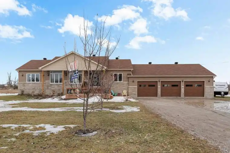 Set in a peaceful rural setting just minutes from the charming heritage town of Perth, this thoughtfully designed bungalow offers comfort, space, and exceptional natural light. Welcome to 1496 Drummond School Road. This beautiful open-concept home features a smart, functional layout that feels both spacious and inviting. The main living areas showcase rich hickory hardwood flooring, while 2 of the bathrooms are finished with porcelain tile. A striking 15-foot vaulted ceiling elevates the living room, where transom windows flood the space with natural light and create an airy, welcoming atmosphere. The kitchen and living areas flow seamlessly to a durable garden door that opens onto a fantastic deck, perfect for entertaining or relaxing while overlooking the quiet countryside. Both the front and back decks provide excellent outdoor living spaces to enjoy throughout the seasons. This home offers a warm, cozy feel while still delivering the openness today’s buyers are looking for. Large windows throughout ensure sunlight fills the home all day long. Situated directly across from Drummond Central School, the location is ideal for families, and the quiet road is perfect for daily walks, runs, or bike rides. Outside, the spacious backyard offers endless possibilities with plenty of room for a pool, play structures, gardens, or simply enjoying the open space. A rare heated three-car attached heated garage provides excellent storage and convenience for vehicles, tools, and recreational equipment. If you’re looking for a bright, comfortable home with thoughtful design, outdoor space, and a peaceful setting just outside Perth, this property is a must-see.