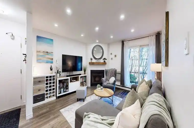 Corner open concept unit with a private terrace that opens directly to the backyard, offering the feel of a sunny outdoor space in this boutique building. The unit has been upgraded throughout, including a renovated kitchen with an island, a new bathroom, pot lights, popcorn ceiling removal, and built-ins in the walk-through closet with semi-ensuite access. The kitchen also features a large pantry, and the unit includes an exclusive-use storage locker with direct access from the terrace. Includes one underground parking space, with the option to assume an additional tandem parking space for $55/month. Located next to a plaza with grocery stores and everyday amenities, with excellent highway access and highly regarded schools nearby.