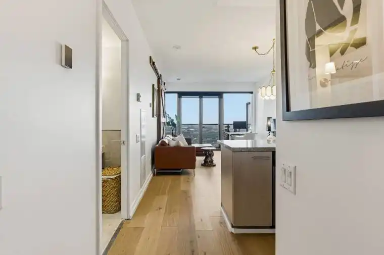 Fully renovated one-bedroom in the heart of the Distillery District-thoughtfully upgraded and immaculately maintained. Nearly 600 sq ft of bright, South East-facing living space finished with Coastal Retreat oak wide-plank engineered hardwood floors. Floor-to-ceiling windows flood the space with natural light and frame open views toward the lake, with a walkout to your private balcony.The kitchen features granite counters, stainless steel appliances, and a centre island. The bathroom has been finished with Corian double sinks, high-end faucets, a deep soaker tub, and a rain shower. A reclaimed wood barn door with black iron hardware connects the bedroom to the living area, offering flexibility without sacrificing the open feel. Steps to TTC, the DVP, and the Gardiner. A short walk to St. Lawrence Market and the Financial District. 24/7 concierge and full building amenities included. One parking spot included.