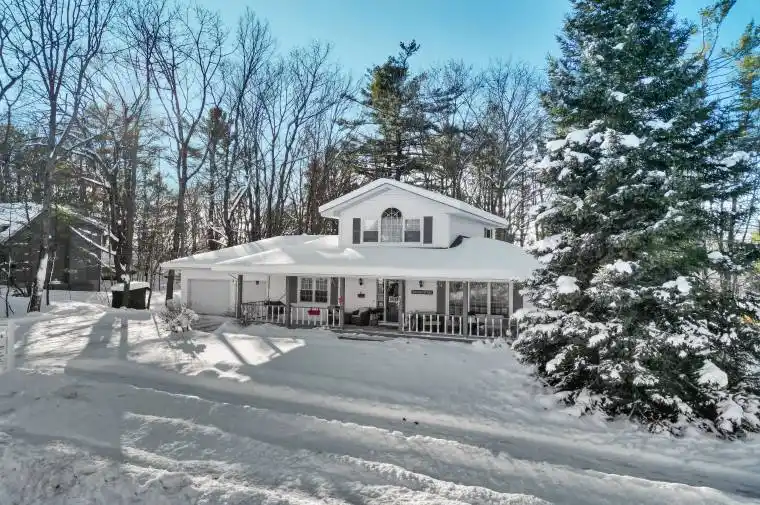A warm and welcoming home tucked into one of Bracebridge’s most desired neighbourhoods. Set on a 1/2 acre lot, with close proximity to the hospital, shopping, golf courses, and nature right at your back door, this location makes everyday living easy while keeping you connected to the best of Muskoka. Located in the Macaulay Public School catchment area, just steps from the Wilson’s Falls trail system and around the corner from Macaulay Tree House Daycare. It’s a neighbourhood where kids can play, families can grow, and outdoor adventures are always close by. The home offers a thoughtfully designed 3+1 bedroom, 3-bathroom layout. The entire upper level is dedicated to the spacious primary suite, complete with a walk-in closet and a 4-piece ensuite. The main floor is bright and welcoming, featuring two additional bedrooms, a full bathroom, open-concept kitchen, dining, and living area designed for everyday living and entertaining. The 2022 kitchen renovation shines with cultured marble countertops and stainless steel KitchenAid appliances, creating a functional hub of the home. From the dining area, step out onto the composite BBQ deck added in 2023, with convenient stairs leading down to the spacious patio below and newly fenced backyard. The mudroom with main floor laundry and interior access to the double attached garage adds convenience. The lower level walk-out, renovated in 2019, offers a rec room, office, additional bedroom, updated 3-piece bathroom (2024) ideal for guests or extended family. Outside, the property continues to impress. Established perennial gardens, a private treed setting. A charming covered front porch with a swing adds instant curb appeal and a welcoming place to unwind at the end of the day. Major updates include a high-efficiency gas furnace (2018), upgraded electrical panel (2023), and central air conditioning (2024). This is the kind of Muskoka home where community, convenience, and nature come together ready for your next chapter.