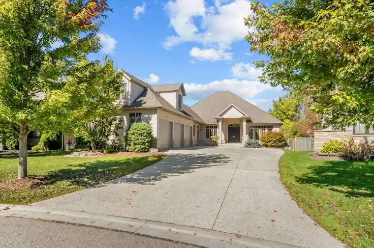 Tucked into a quiet cul de sac in Talbot Village and set on an expansive lot backing directly onto a conservation area with a pond and mature forest, this exceptional home offers rare privacy in a true community setting. Professionally landscaped and surrounded by towering trees, the property feels like a private retreat while remaining just minutes to schools, parks, trails, Boler Mountain, shopping, restaurants, the YMCA, and quick access to Highways 402 and 401. Step inside and you are welcomed by soaring ceilings, rich hardwood floors, and an open layout that draws your eye straight to the treed backdrop. Nearly every window frames greenery, with the dining room offering especially beautiful views of the forest and wildlife. Custom finishes elevate the home throughout, including detailed millwork in the family room, ceiling speakers, a private office with custom cabinetry and embedded floor power, and automatic lighting in every closet. Designed for entertaining and everyday living, the open concept kitchen and living space flow seamlessly to the backyard oasis. The fully finished attic with full bathroom and the finished basement add exceptional flexibility, featuring heated floors in the basement bathroom, a steam shower, electric fireplace, and a custom bunk room that feels like a private hideaway. Outdoors, enjoy year round living with a digitally controlled pool with jets and automatic cover, wireless programmable sprinkler and lighting systems, hot tub, and cozy outdoor fireplace. Whether hosting summer pool days, fall evenings by the fire, or winter nights in the hot tub, this backyard was built to gather. Additional highlights include a furnace replaced approximately 6 years ago, air conditioning approximately 3 years ago, and 200 amp service. A rare opportunity combining quality, privacy, and lifestyle in one exceptional setting.