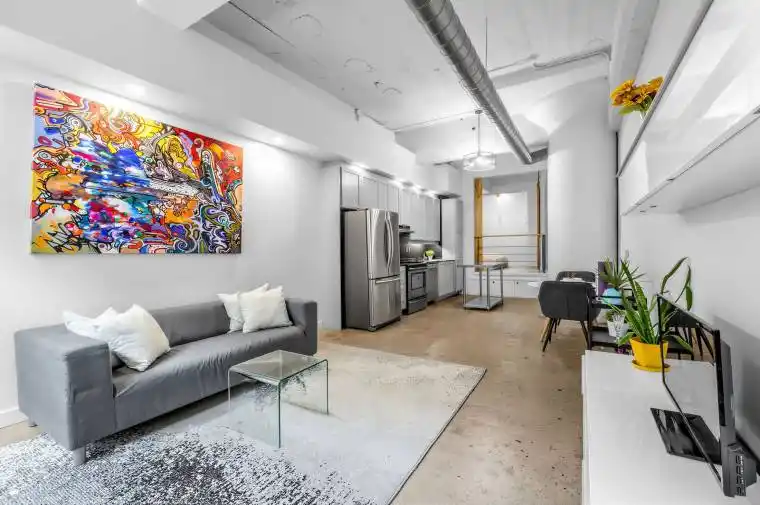 Experience the iconic Merchandise Lofts, featuring soaring 12-ft ceilings, polished concrete floors, exposed ductwork, and heritage windows. The open-concept layout boasts a generous 750 sq ft of living space and seamlessly connects the kitchen, living, and dining areas-perfect for daily living or creating a stylish work-from-home space. The upgraded kitchen features sleek cabinetry, New stainless steel appliances, and plenty of storage. The elevated bedroom includes custom built-in drawers beneath the platform, maximizing space while keeping the loft organized.Located just steps from Toronto’s Financial District, TMU, and the University of Toronto, residents enjoy premier amenities including 24-hour concierge,indoor pool, gym, sauna, yoga and games rooms, basketball court, rooftop terrace with BBQs, and a dog walk area. A rare opportunity to live in a true industrial-design loft that combines historic character, modern style, and downtown convenience.