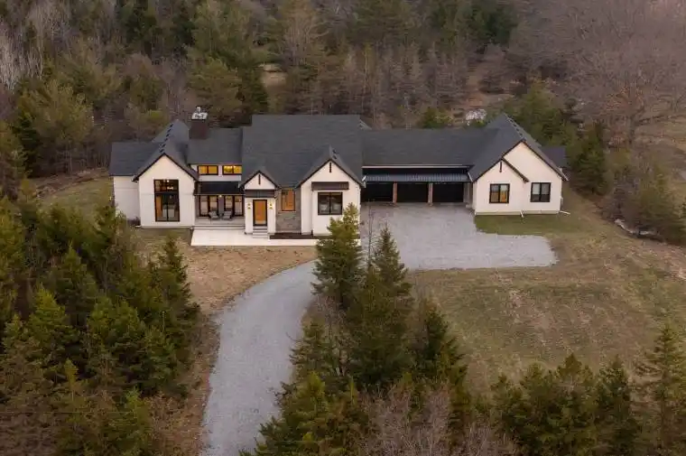 Set on nearly six scenic acres, this newly built bungaloft (2024) offers an exceptional blend of thoughtful design, quality finishes, and peaceful surroundings. Bright, open-concept living spaces are highlighted by soaring ceilings, oversized windows, and a seamless flow ideal for both everyday living and entertaining. The main living area features rich hardwood flooring, a striking gas fireplace with custom built-ins, and large sliding doors that open to a covered outdoor space, perfect for enjoying the property year-round. The kitchen is beautifully appointed with a mix of modern and natural elements, including contrasting cabinetry, granite countertops, gas cooktop, and a spacious butler’s pantry with ample storage. A well-designed dining area with built-in cabinetry adds both function and style.The main floor primary suite offers a private retreat, complete with its own fireplace, walkout access to the covered deck, a spa-inspired 5 pc ensuite, and a generous walk-in closet with custom organization. Additional main floor highlights include a powder room, laundry area, and a functional mudroom with built-in doggie bath. Upstairs, a loft-style layout provides added versatility with space for a home gym, an additional bedroom, and a full bathroom, along with a separate office featuring custom shelving. A fully self-contained in-law suite offers excellent flexibility for extended family or guests, featuring its own entrance, kitchen, living area, bedroom, laundry/mud room, and full 4 pc bath plus private fenced yard. Complete with a triple-car garage and a 4500-gallon cistern, this property delivers space, privacy, and modern comfort in a beautiful rural setting.