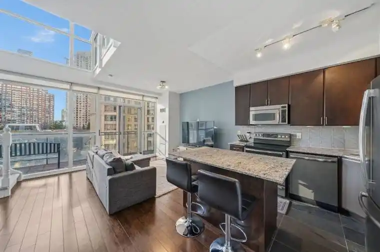 This executive two-storey condo feels like a penthouse suite in the heart of Mississauga! Boasting over 750 square feet of loft-style living, the space is defined by soaring 18-foot ceilings and floor-to-ceiling windows that flood the interior with natural light. Designed for those who love to host, the main floor features an open-concept layout that transitions seamlessly from a generous living and dining area to a modern kitchen with ample cabinetry for the home chef. The inclusion of a main-floor guest washroom ensures that your upper-level living remains entirely private. Upstairs, the primary suite is a tranquil loft retreat, complete with a full four-piece ensuite and convenient laundry-all tucked away from the main living space. Enjoy clear views of Celebration Square from the large open balcony or take advantage of the building’s premium amenities. The location is unbeatable for urban professionals, sitting just steps away from Square One Shopping Centre and major transit hubs like MiWay and the GO. With quick access to Highways 403, 401, and the QEW, this condo perfectly blends luxury with everyday convenience.