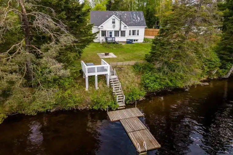 Meticulously well kept 1.5 storey year round home or cottage with over 200’+ of south facing frontage located along the Magnetawan River with direct access to the 3 lake water system in Kearney. This charming home features 3 bedrooms, 2 bathrooms, level grounds, minimal steps to the water & a beautiful sunporch with views of Perry Lake. Conveniently located in the heart of Kearney, this unique opportunity is on the doorstep to Algonquin Park, OFSC snowmobile trails and Algonquin West ATV trails. The unfinished basement provides loads of storage, a workshop space, laundry & utility room. Ample parking for family & guests. This well treed lot offers great privacy ~ an affordable waterfront retreat that boasts great fishing & boating while providing endless year round fun for any outdoor enthusiast!