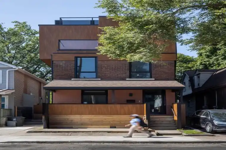 Spanning approximately 1,550 square feet across multiple levels, this newly built (2023) residence at 60 Jones offers a rare balance of architectural design and genuinely livable space. Developed by Bicycle Properties as a purpose-built rental, the home is thoughtfully laid out to provide both openness and separation. The main level features a generous open-concept living and kitchen area with an oversized island, full-height cabinetry, and integrated storage. Clean lines, wide-plank flooring, and 10′ ceilings create a calm, cohesive interior, while large west-facing windows bring in soft afternoon light and treetop views. Upper levels provide well-defined bedroom spaces with built-in storage and a refined ensuite, all culminating in a private rooftop terrace that extends the living space outdoors. Features: Layout & Space. Approx. 1,550 sq ft across multiple levels. 2 bedrooms, 3 bathrooms. Designed for both openness and privacy. 10′ ceilings throughout. Kitchen: Oversized island with seating and integrated storage. Full-height cabinetry. Stone countertops. Undermount sink. Wine fridge. Full-size appliances. Living & Finishes: Wide plank wood flooring throughout. Clean, modern architectural detailing. West-facing exposure with treed outlook. Bedrooms: Both bedrooms include built-in closets. One bedroom with full wall of custom storage. Bathrooms: 3 bathrooms total. Ensuite with glass shower and freestanding tub. Additional full bathroom + powder room. *For Additional Property Details Click The Brochure Icon Below*