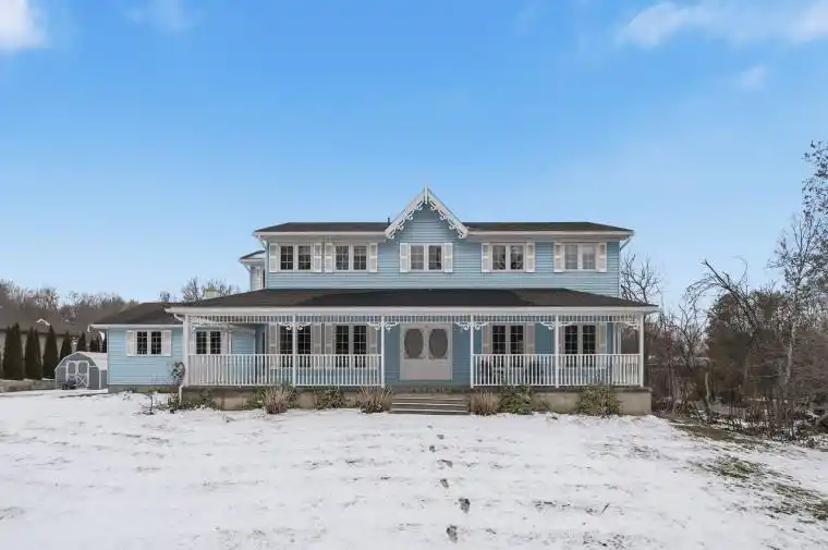 This spacious two-story family home with four bedrooms and three baths is set on a large treed lot, just a quick 2-minute drive north of Kincardine and 400 meters from the beautiful Lake Huron beaches. Designed as a Viceroy Lancaster model, it features a full-width covered front porch and large windows that flood the space with natural light. The main floor showcases an open-concept kitchen and dining area equipped with newer cabinetry and an island ideal for meal preparation. A patio door leads to a generously sized deck, perfect for entertaining guests. Completing the main floor are a cozy living room, an office/sitting area, a laundry room, and a convenient two-piece bathroom. On the upper level, you’ll find a spacious master suite with a walk-in closet and an ensuite bathroom, along with three additional bedrooms and a four-piece bathroom. This property also includes a two-car garage, a storage shed, and an impressive 943 square feet of basement space awaiting your personal touch. With an efficient heat pump, a forced air electric furnace, and a Vermont Castings wood stove, this home offers both comfort and efficiency. Nestled on a nearly half-acre lot with apple and cherry trees, you’ll enjoy the openness and privacy of country living, all while being just minutes from town. Don’t miss out on this fantastic opportunity!
